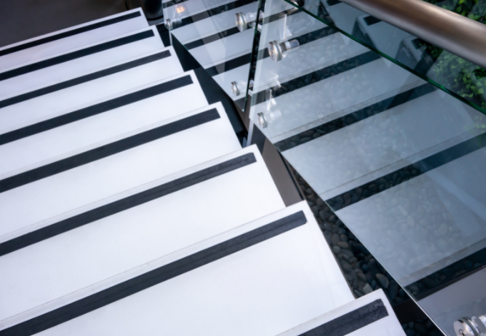 Dessa forma, a fita antiderrapante é ideal para uso interno sobre pisos decorativos como granito, ardósia e madeira.